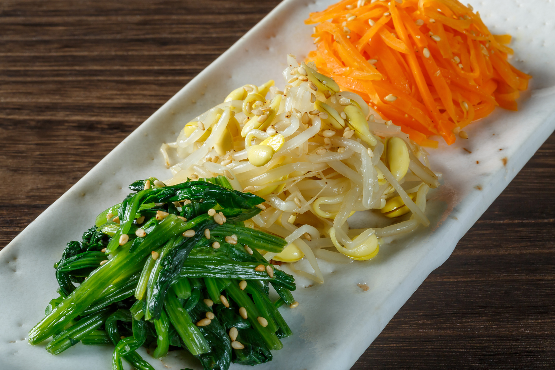 한국의 비건 음식은 나물이 핵심이다. 들과 산의 어린 싹, 시금치나 콩나물, 호박 같은 채소를 물에 삶아서 기름과 소금으로 간하는 게 전부다. 물론 약간의 마늘이 들어가기도 한다. 건강에도 좋고, 물론 맛도 좋다. 여러분들이 좋아하거나 알고 있는 비빔밥 고명도 사실은 이 나물들이 맛을 낸다. 나물은 비건들에게 다채로운 보물섬이다.