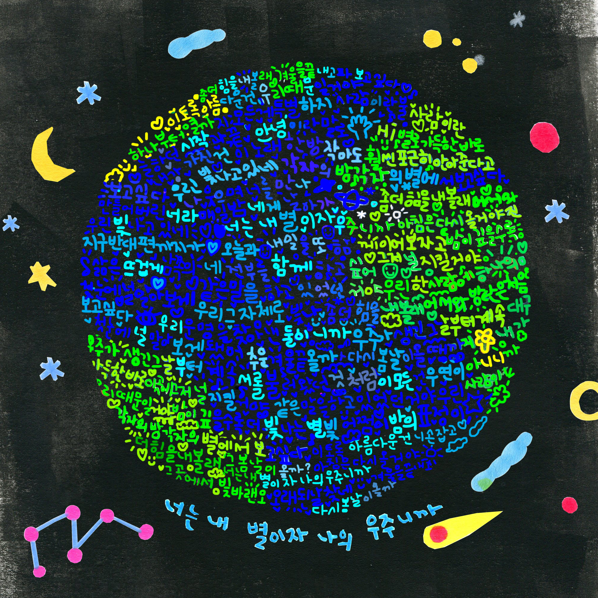 韓国語は全世界で使用者が著しく少なく、互いに類似する文字や構造を持つ欧米圏の言語とは異なり、ハードルの高い言語に挙げられる。にもかかわらず学習者が急増しているということは、明らかに注目すべき事実だ。その基盤にはBTSのようなアーティストの作品が持つ力がある。歌詞一行を一緒に歌うために、その意味を理解するために、その中に込められたメッセージまで完全にわかるために。その単純ながらも切実な気持ちは、言語に対する深い関心と理解をもたらす。誰かが好きで、だからこそ知りたいという最も純粋な原動力。その共通した原動力を持つARMYたちは、韓国語を通して結びつき、互いに助け合いながらつながり、互いにエネルギーを吹き込むコミュニティを作ったりもする。ルナは「韓国語を学ぶことは、私にとって『理解』を意味する」と話す。彼女の言葉の「理解」を「愛」と解釈することもできるだろう。他者の言語を学ぶことは、より愛する方法を知ることでもある。その愛はさらには、ともに生きていく「互い」を理解するコミュニケーション方式であり、架け橋となる。ARMYがハングルと韓国語を通してBTSを、さらには他のARMYたちを理解するように。そうして互いの言語が「もう一つの世界を作ってくれる」。