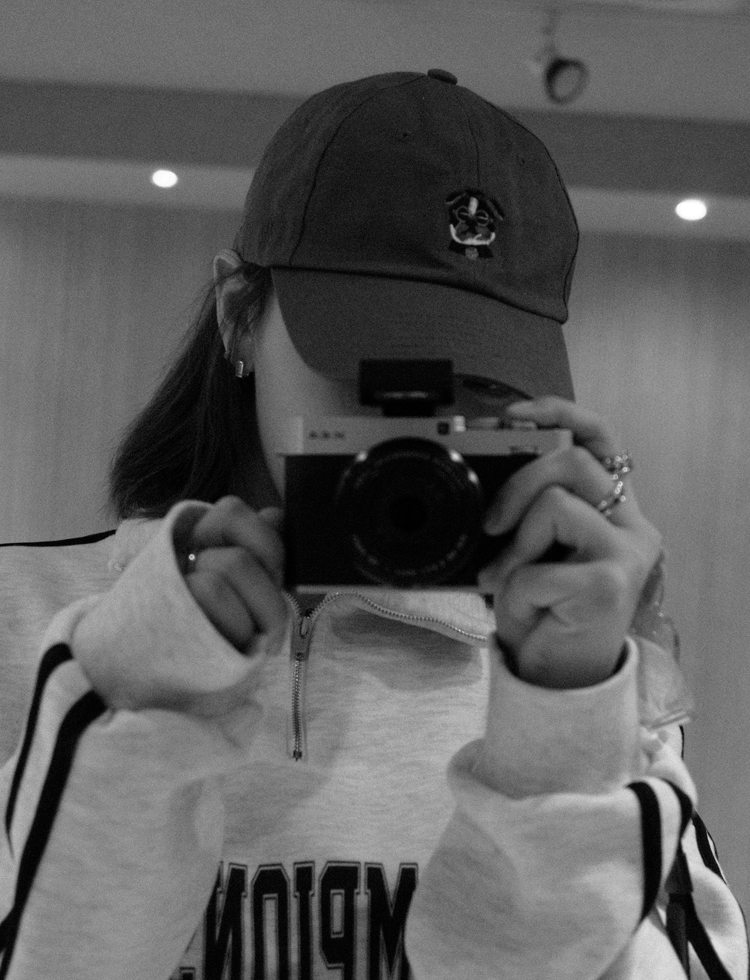 Moon Sua: Since I was so interested in photography, I went looking for a camera. There’s so many different kinds of cameras and I was trying to figure out what kind to buy, and I really wanted one that had the feel of a film camera. The camera I use now is simple to use and just the right size to carry around. It’s exactly what I was looking for! It also does simulations, so I can use that to get whatever feeling I’m going for, and I can even adjust the colors myself, so I thought it was perfect and bought it. And I love the blue tone with Fujifilm. That camera’s my most cherished possession. I realized I could use the camera for the rest of my life and I can do everything just with the one camera, so I’m really happy with it.