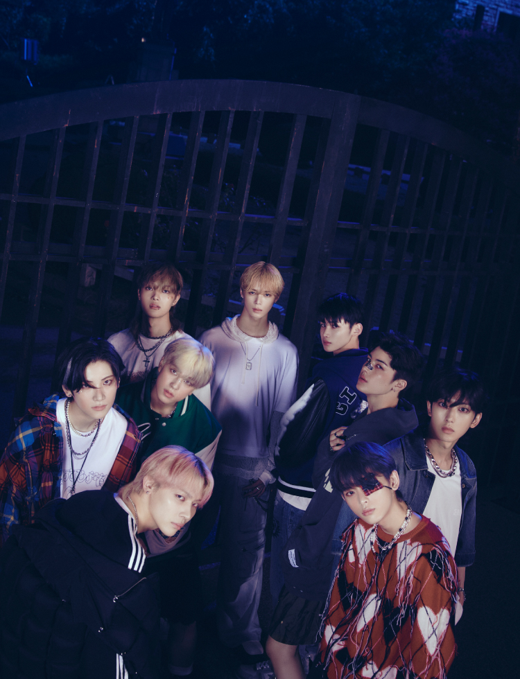 In DARK MOON: THE GREY CITY, the webtoon starring werewolf characters with connections to the &TEAM members, the protagonists wander between cities looking for reprieve, only to be ostracized. As the group performs what the lyrics to “War Cry” suggest, the song takes the GREY CITY werewolves’ emotions and experiences and transports them to First Howling: NOW. The album’s second song, “Dropkick,” contains the lyrics, “Yeah, with you … We’ll start running towards the future,” and the boys sing it with such brightness that it’s as though they’re running beneath sunny skies as they do. The chorus—“won’t leave you standing by yourself”—sounds like a reaction to seeing their hopes for the future dashed after being rejected by the world just for being the way they are. Next on the album is “Really Crazy,” a song about how wonderful it feels to get to know someone but also about “not being scared.” “ALIEN,” as the title gives away, explores how they see themselves as outsiders (“let’s follow our hearts”). Here, NOW shows its overarching narrative idea of those who were once ostracized like aliens going on to reveal their true selves to the world and experience happiness before preparing to leave again. In that sense, that someone they’re getting to know isn’t just someone who makes them happy but a member of the group whose ranks “resonate as one” to “someone’s distant howl” and “initiate a challenge” with them, as in the lyrics to “War Cry.” Just as in DARK MOON: THE GREY CITY, if those who are ostracized are going to make their way in the world, they have to form a group with those who they can trust. The &TEAM debut trailer opens with a single perspective of the world and the line, “Wolves run.” The world is seen from a wolf’s perspective, and the group’s performance of “War Cry” infuses the album, and the entire First Howling series, with the same perspective. The nine members of &TEAM are transformed into wolves, stretching out their arms and legs, moving with their core muscles tightened throughout the entire performance. Singing, “Form a herd, initiate a challenge,” the group members move as one like a herd of giant, wild wolves, but even when they break from the line and move in their own directions, the movements are still perfectly in sync. It’s that kind of thrilling, perfectly timed movement that only a group as new and fresh as &TEAM can execute, living up to the teamwork their name suggests. When the boys take to the stage, they’re more than just the characters from their webtoon; the group choreography comes together thanks to their individual strengths, the group’s astounding teamwork, and the sheer amount of practice they put in. Indeed, they truly become wolves as they dance. &TEAM debuted last year, made up of four members selected ahead of time and five more who made it through the show &AUDITION - The Howling. They may have all come from different countries and spoken different languages, but those human-imposed limitations now seem meaningless. They’re all wolves.