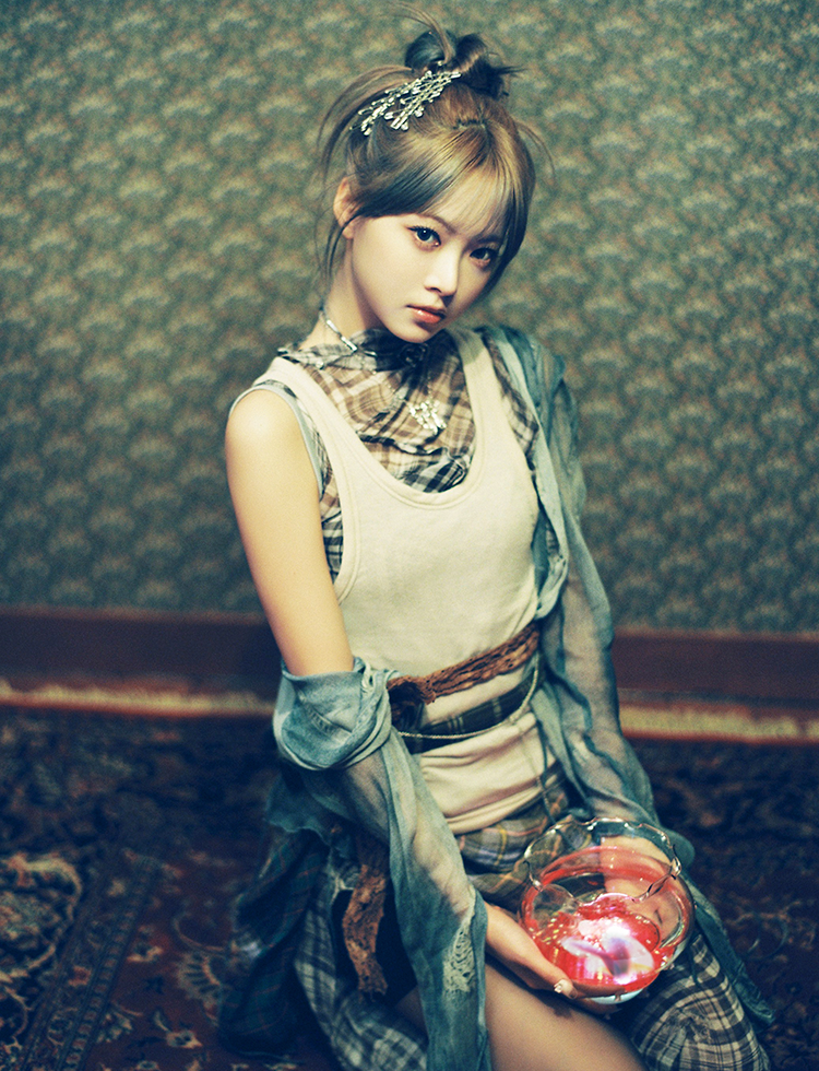 HONG EUNCHAE:东京巨蛋这个演出场地非常大,很多艺人都在看,我真的很想做好。即便一开始很紧张,我一般很快就会投入到舞台中,但当时因为技术方面的部分很多,所以我特别紧张。要用火,要撕衣服,要翻过桌子,还要往后掉,裙子要扔得远远的不能被踩到。想的东西太多了,以为是在用脑子跳舞呢。可一瞬间就过去了,现在都记不起来了。(笑)直播的时候,放了很多烟雾,所以纸不好点着。我觉得自己搞砸了,挺伤心来着,但我从舞台上下来的时候,姐姐们朝我跑了过来。不知道是踏实,还是幸福,我第一次感受到了这种无法言喻的奇妙情感。